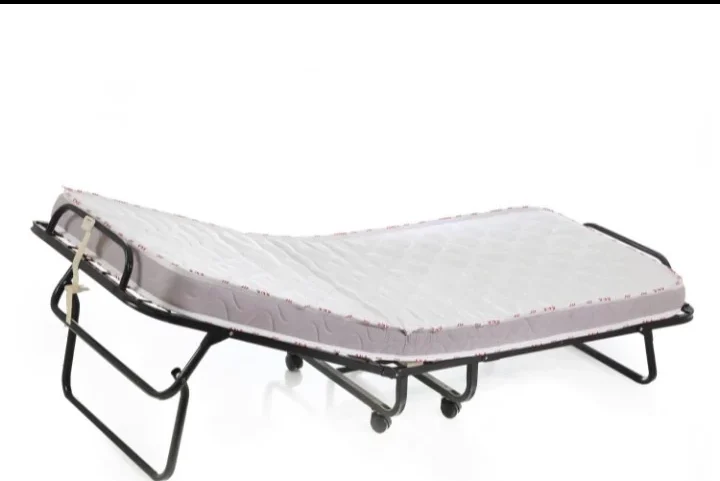 تخت تاشو تک نفره هتلی یا بیمار ویژگیهای تخت جمع کردن و جابه جای راحت دارای چهار چرخ برای جا به جای سبک و مقاوم تحمل وزن تا 150 کیلوگرم بدنه فلزی از قوطی 25در 25 دارای گرانتی تشک از ابر 30کیلو قیمت مناسب مناسب و خیلی عالی